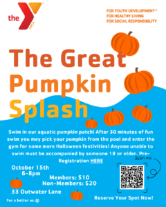 You will have 30 minutes swim and 30 minutes in the gym for activities! Everyone gets a pumpkin!
